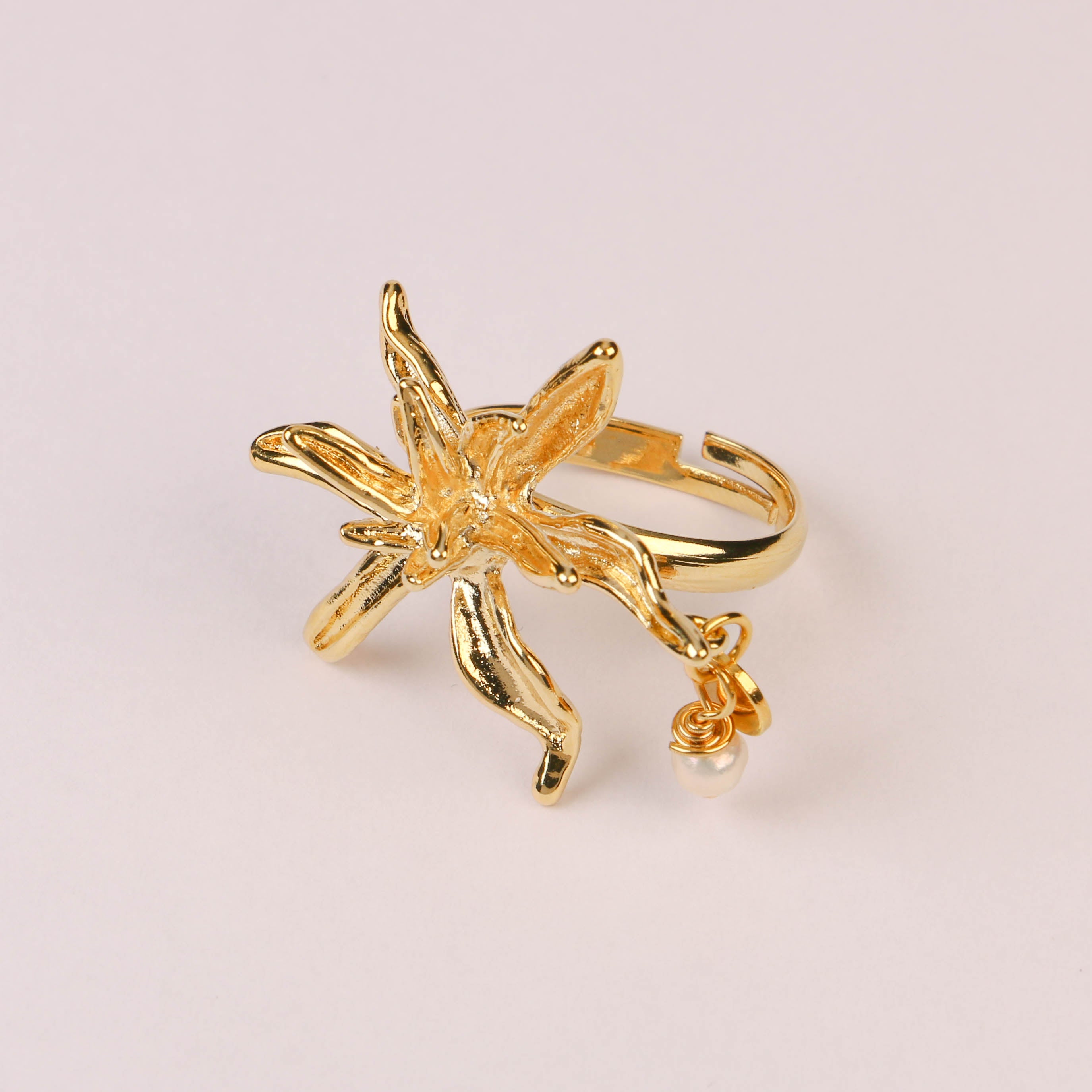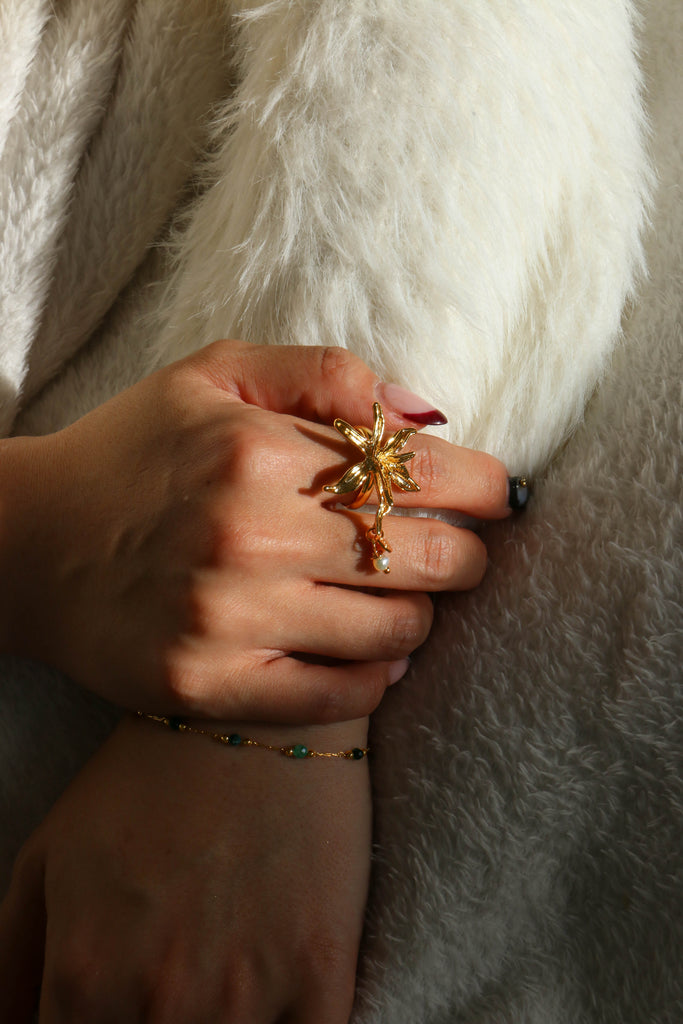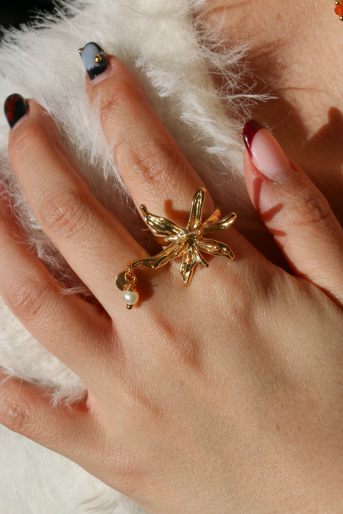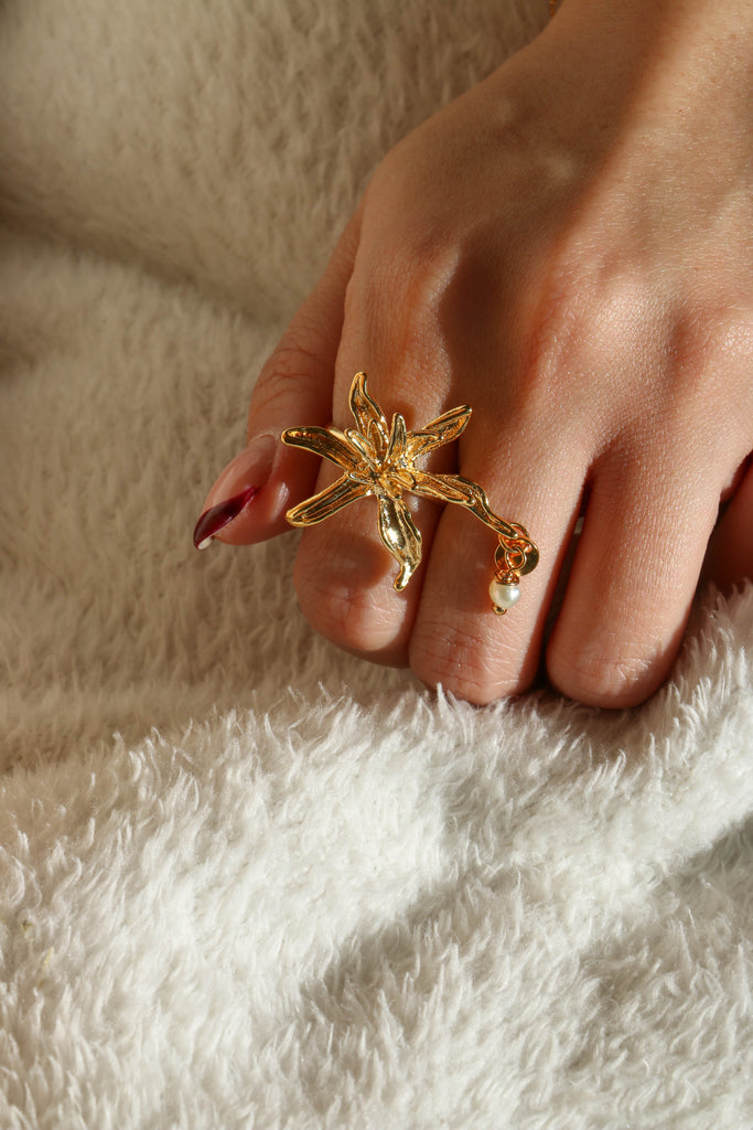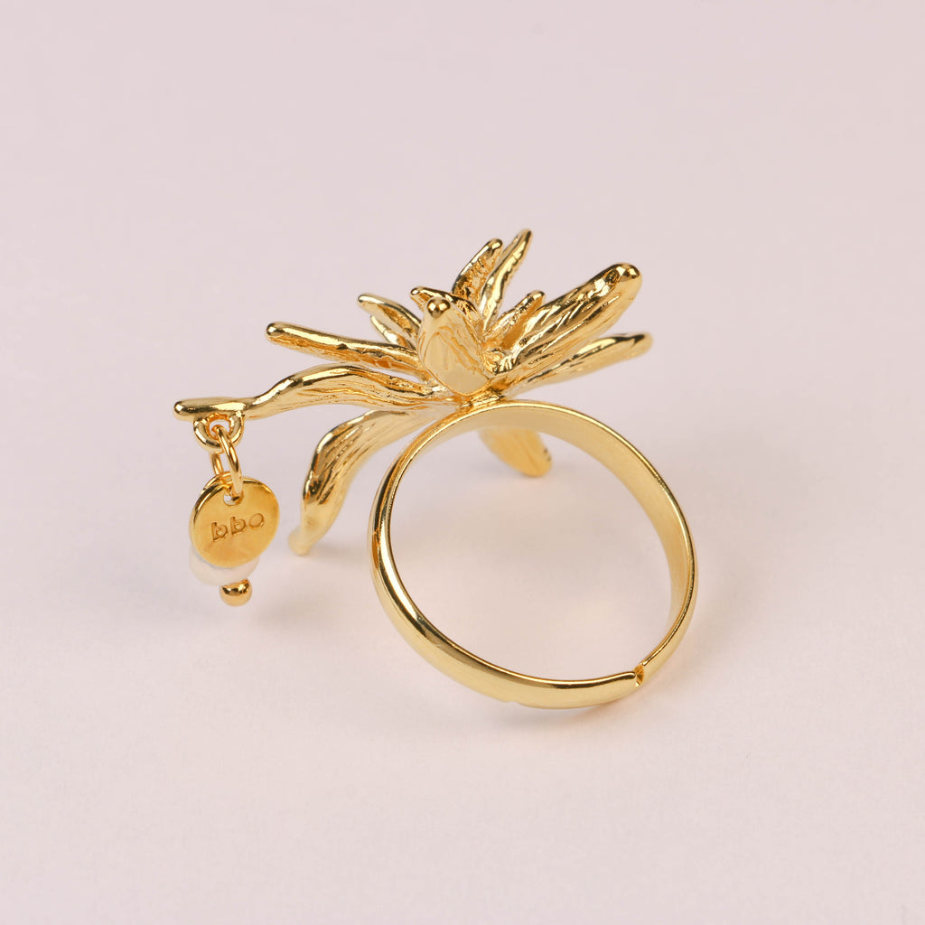 Bague ajustable plaqué or 3 microns ornée d'une perle naturelle.