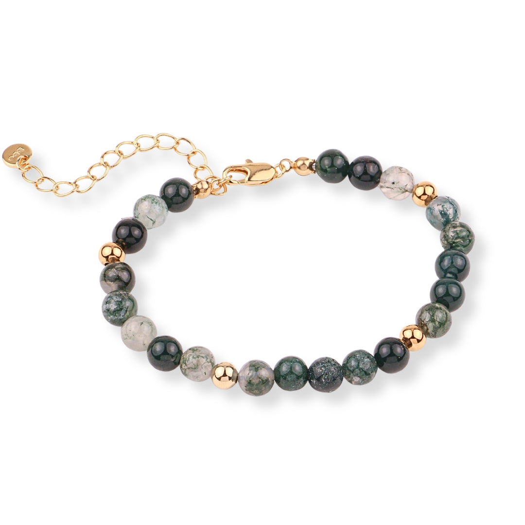 Bracelet plaqué or 3 microns orné de pierres d'agate mousse.